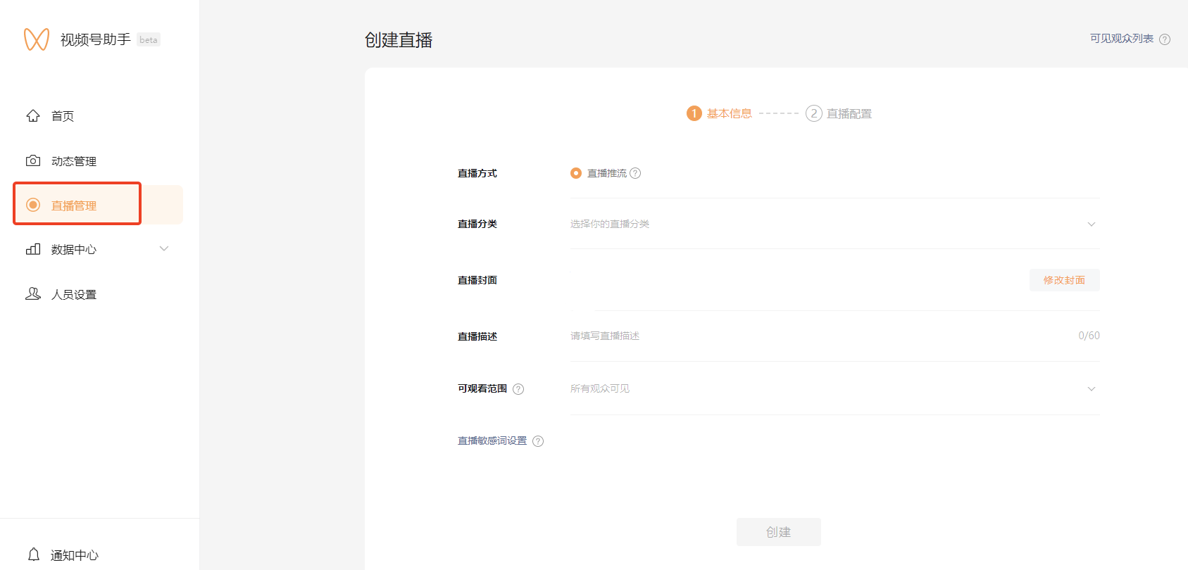 注意:视频号需要到第三方平台点击开始直播,不同平台要求不同,根据推流平台要求确定开播操作。